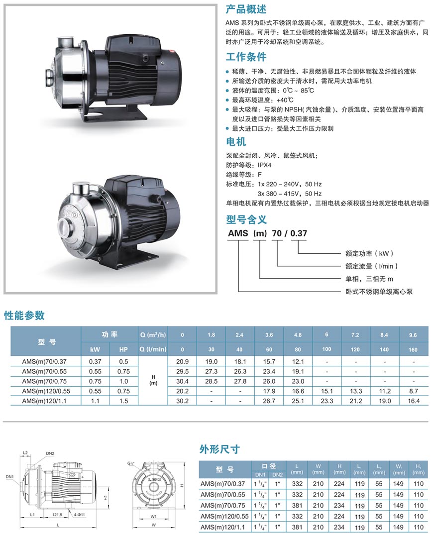 AMS卧式不锈钢单级离心泵